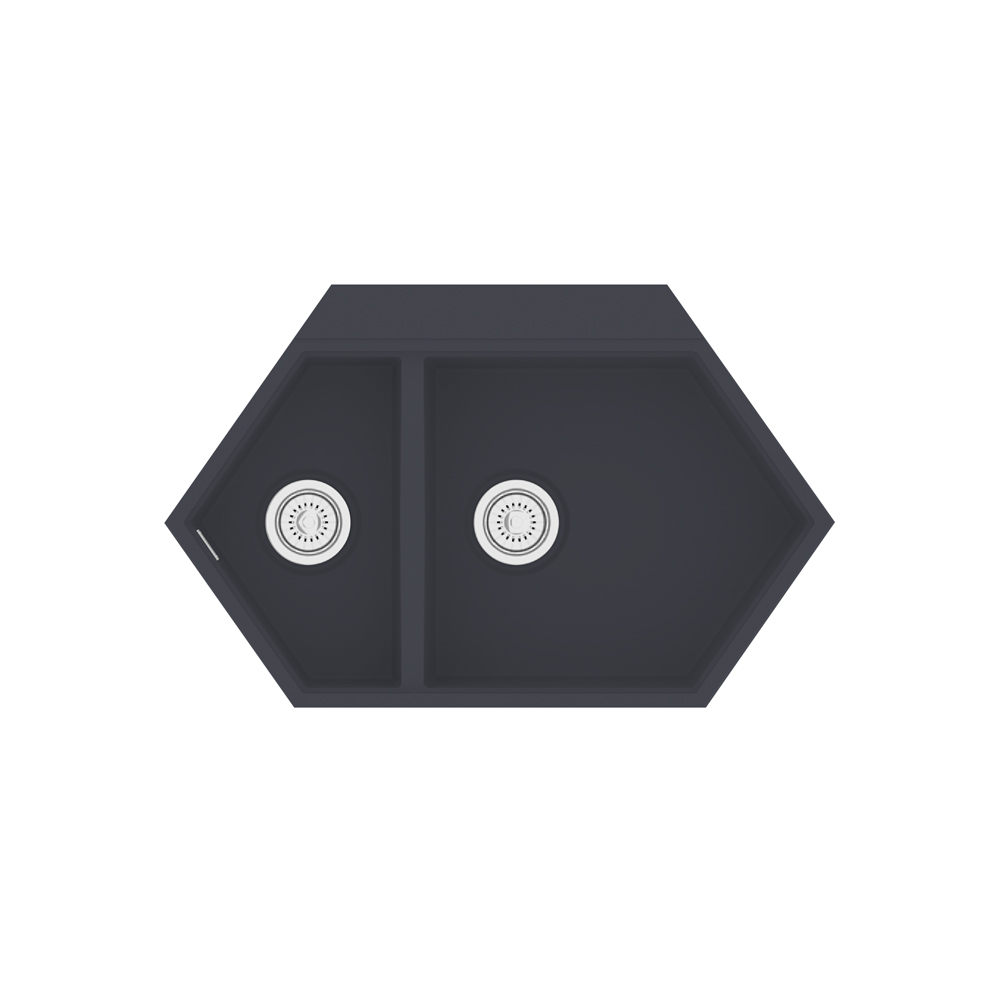 Специальная модель для углового размещения мойки в гарнитуре. Большая и средняя по объему чаши позволяют варьировать их использование.